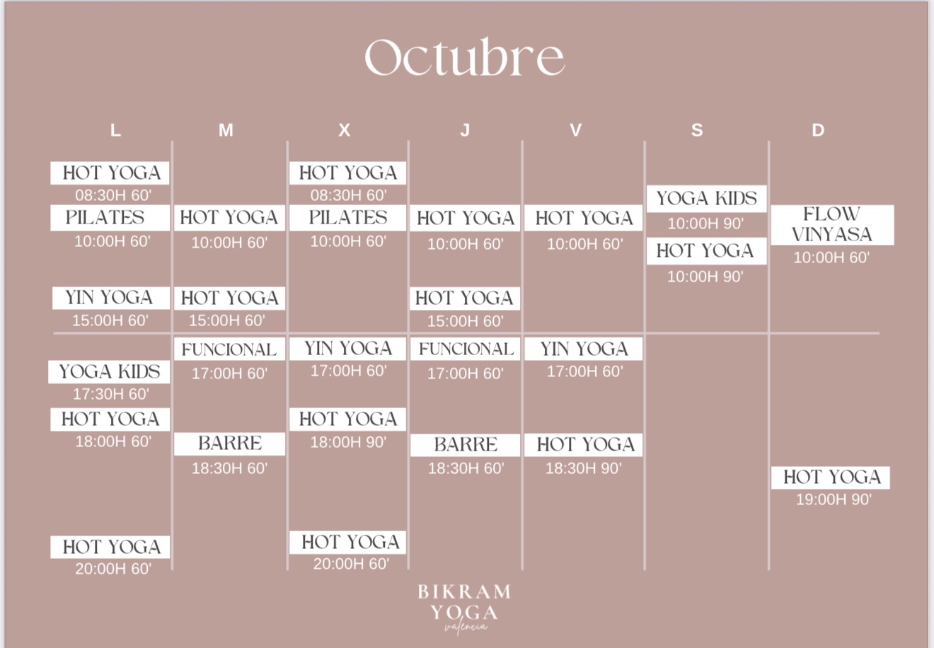 Tenemos clase de Bikram Yoga (Hot Yoga), Vinyasa Yoga, Hatha Yoga, Yin Yoga, Yoga para niños, Clases privadas de Yoga, Yoga para empresas y Pilates .