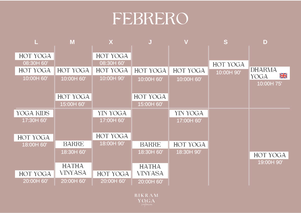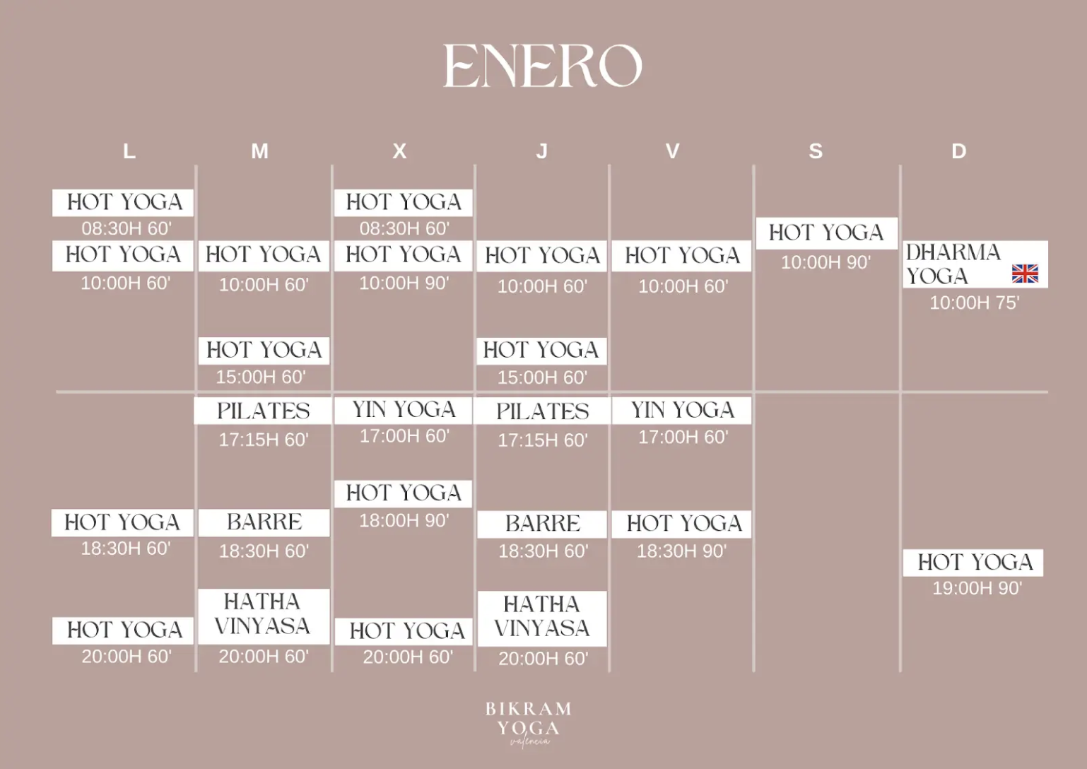 Practica yoga cuando quieras: abrimos de lunes a domingo, con clases de Bikram (Hot Yoga), Vinyasa, Hatha, Yin Yoga y más.